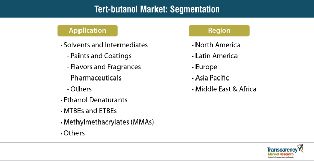 There are however, some factors that may impede the development of the global market for tert butanol and stop it from achieving its full potential. One of the key restraining factor for market growth has been the strict rules and regulations issued by the regulatory authorities about the VOC emissions. This however might present manufacturers with a new segment to tap into of bio-based solvents. This might able to compensate for the slow pace of the market due to stringent regulatory environment.